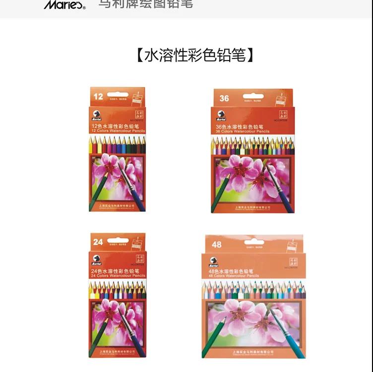 马利牌彩色铅笔 水溶性彩色铅笔 套装 12色/18色/24色/36色/套装 专业彩色绘图铅笔
