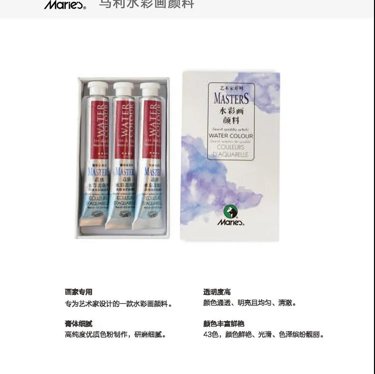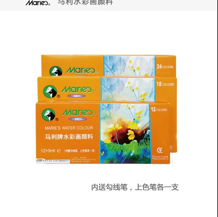 马利牌水彩画颜料,5ml/支,12色/18色/24色套装。内送勾线笔和上色笔各一支